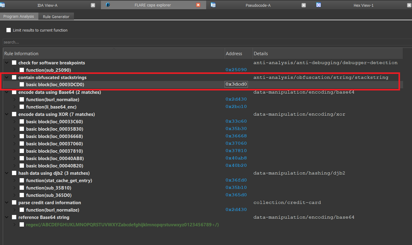 **The rule detected a regex as obfuscated stack strings**
